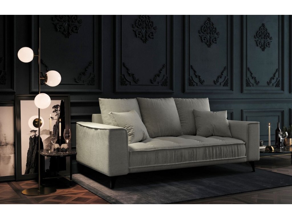Luxus dizájner kanapé DEVICHY Chloe-val egyedülálló exkluzív szegéllyel és teljesen steppelt ülőpárnával hangsúlyozott forma kihagyhatatlan részévé válik otthonának. Stabil fém alap tökéletesen kiegészül a következő anyagból készült kárpitozással minőség szövetek világosszürke színben kialakítás, amelyet átlagon felüli tartósság és speciális vízlepergető kezelés jellemez.