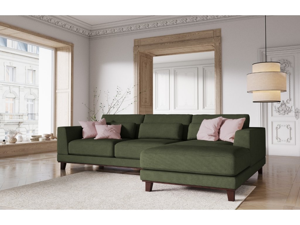 Windsor & Co Leon zöld kordbársony sarokkanapé 260 cm, jobb