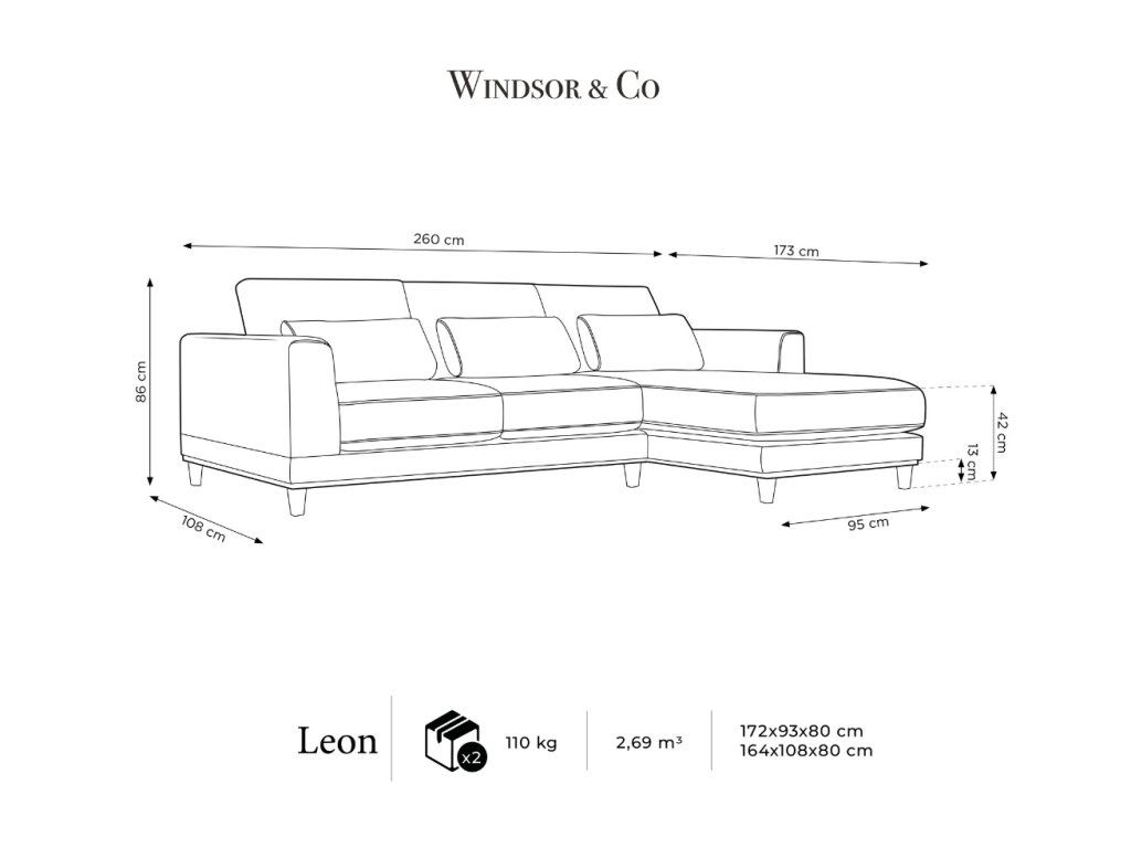 A Windsor & Co elegáns Leon sarokkanapéjának karfái tökéletes helyet biztosítanak Önnek a pihenéshez és a kikapcsolódáshoz. A Leon habszivaccsal töltött háttámlával és üléssel a stílus, a kényelem és az ellenállhatatlan báj tökéletes keveréke. A kellemes zöld színű kordbársony anyaggal kárpitozott kanapé a modernül berendezett terek királyi helyévé válik , akár lakó-, akár kereskedelmi célú. A szövet nagyon ellenálló a kopással szemben, így garantálja a hosszú távú használatot kopás jelei nélkül. A Leon kanapé pontos jellemzői a vonzó dizájn, egy csipetnyi luxussal és előkelőséggel. A kanapé tölgyfából készült. Az ülőfelület egységesítése érdekében javasoljuk, hogy a kanapét egészítse ki egy ugyanabból a sorozatból származó stílusos karosszékkel. Pihenjen és lazítson stílusosan!