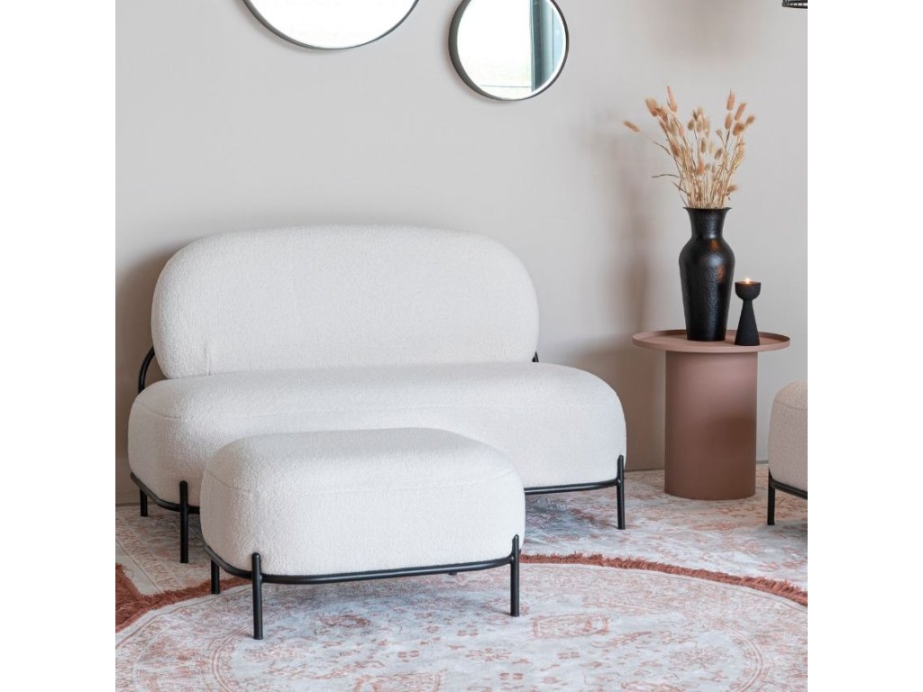Egyedi megjelenésének köszönhetően a Polly Ottoman minden modern otthon kihagyhatatlan részévé válik. Polly egy nagyon szép, bolyhos, magasabb bolyhos mackóanyaggal van kárpitozva, amelyet első tapintásra szeretni fogsz. A kárpitozást masszív fém vázzal és talppal egészíti ki. Az alap műanyag csúszkákkal van ellátva, hogy megvédje a padlót a karcolásoktól. A lábzsámoly remekül mutat az ugyanabból a sorozatból származó székkel kombinálva.