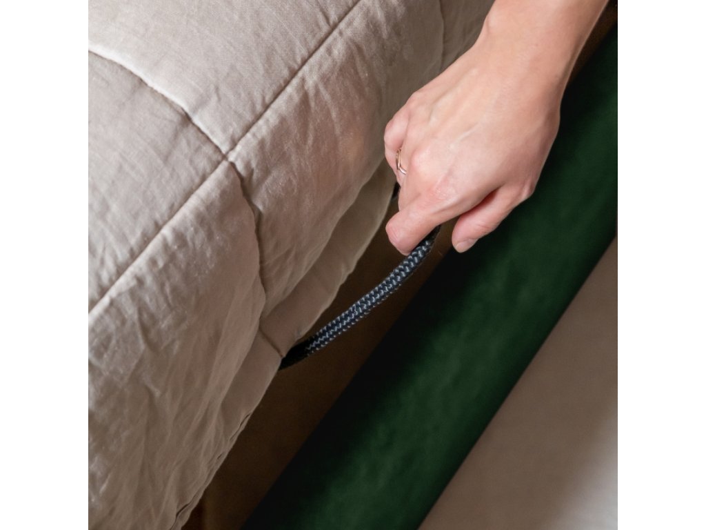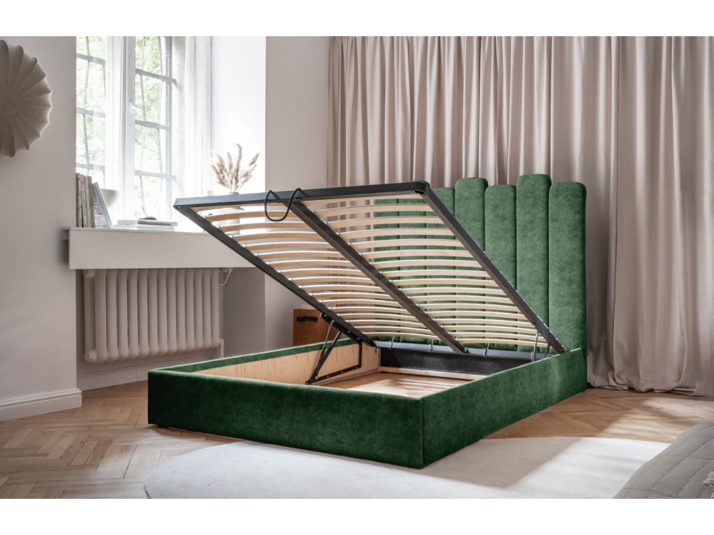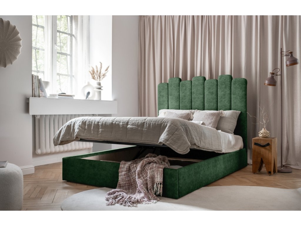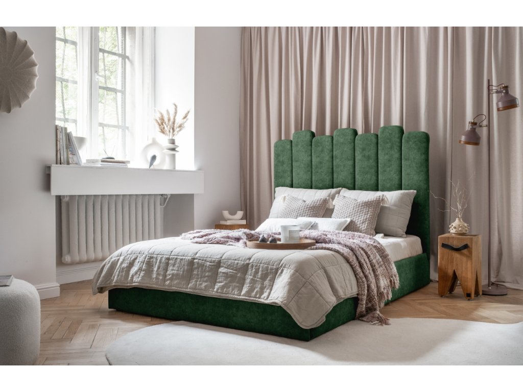 A Dreamy Aurora franciaágy a Miuform márka a geometrikus fejtámlájának köszönhetően lenyűgöző dizájnnal rendelkezik. A puha bársonyos szövet fenségességet és eleganciát kölcsönöz az ágynak, és kiemeli a kényelmét. A puha habszivacsnak köszönhetően élvezheti a kényelmet, akár nyugodtan alszik, akár kedvenc könyvét olvassa. Az ágy tágas tárolóhellyel rendelkezik a párnák és takarók számára, amelyhez az elülső részen található pántnak köszönhetően könnyen hozzáférhet.