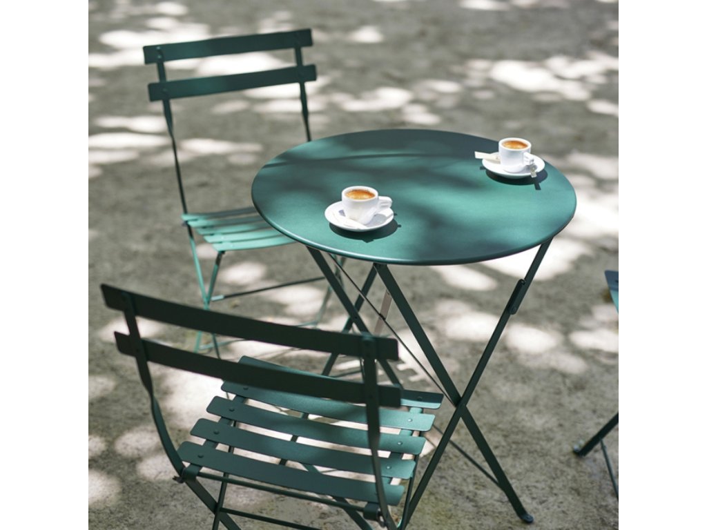 Zöld fém összecsukható asztal Fermob Bistro Ø 60 cm - pesto ernyő