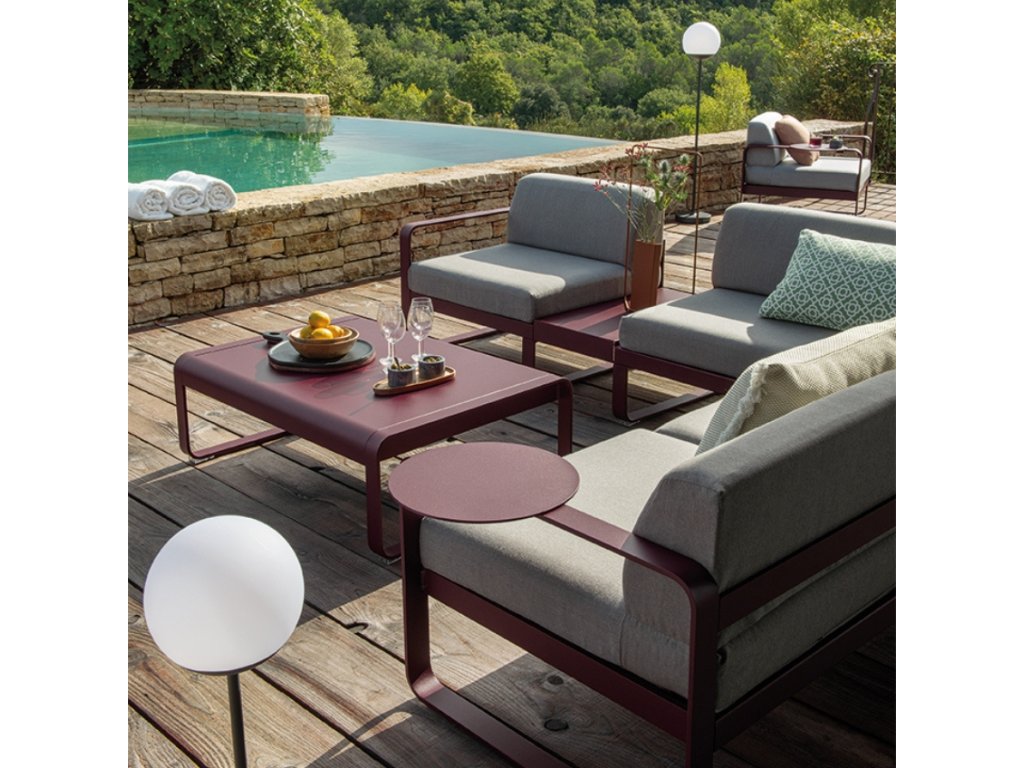 A kiegészítő oldalasztal Fermob Bellevie praktikus társ a kertben való pihenéshez és lazításhoz. Az alumíniumlap garantálja a tartósságot és a könnyű karbantartást, így az asztal ideális beltéri és kültéri használatra. A gumírozott rögzítésnek köszönhetően nem kell aggódnia, hogy megkarcolja és megrongálja a kanapé vagy a fotel festését. A legjobb design élmény érdekében kombinálja az oldalsó asztalt a Fermob Bellevie kerti kanapécsaláddal.