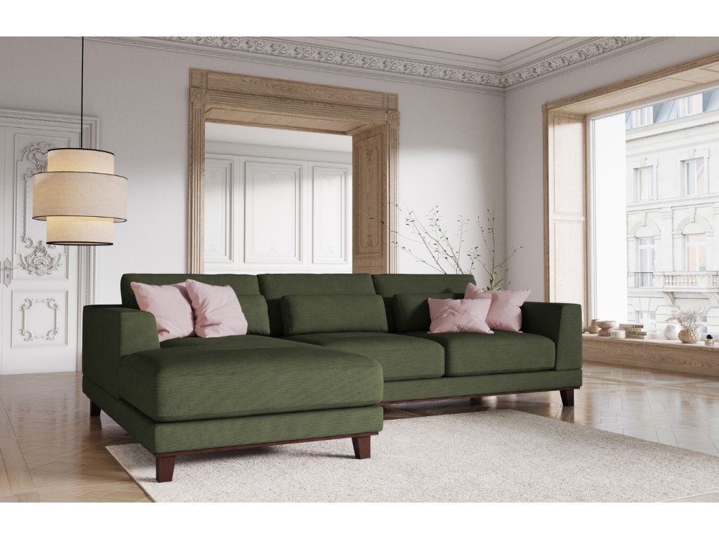 Zöld kordbársony sarokkanapé Windsor & Co Leon 260 cm, bal